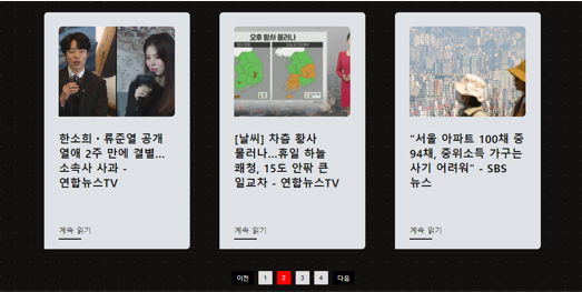 News.vue는 뉴스 데이터를 API로부터 받아와 NewsMain과 Pagination 컴포넌트에 전달합니다.