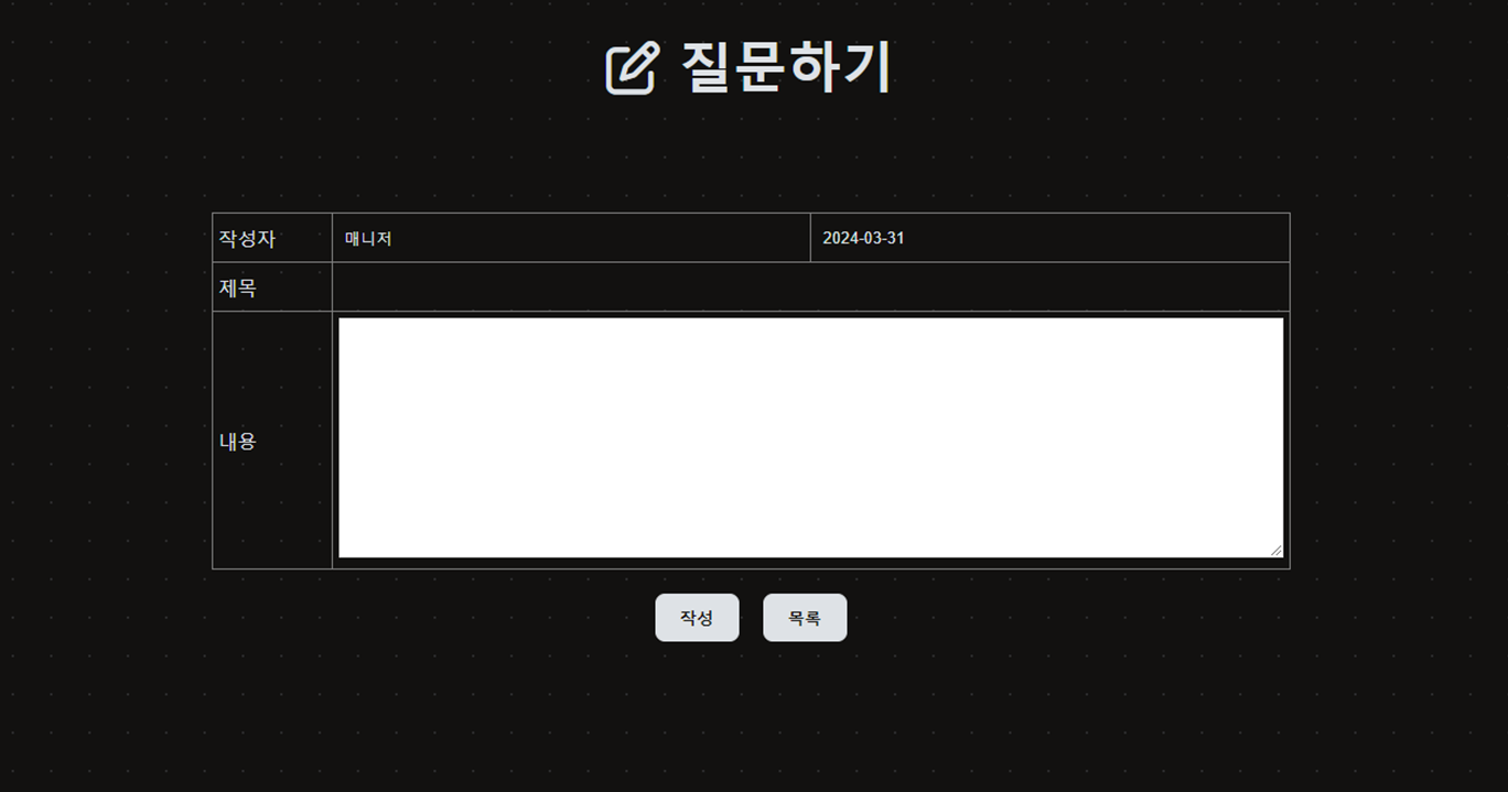 - 폼 제출 처리: onSubmit 메소드는 폼 제출 이벤트를 처리하며, Vuex에 데이터를 저장하고 Q&A 목록 페이지로 이동합니다.