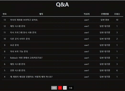 - Q&A 목록 표시: v-for 디렉티브를 사용하여 qnaData 배열을 반복하여 게시글 목록을 생성합니다.