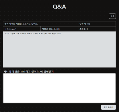 - 2. 답변 작성: 관리자가 로그인했을 경우, 답변 작성 폼을 표시하고, 작성된 답변을 Vuex에 저장합니다.