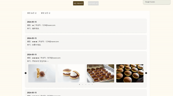 - ReviewList 컴포넌트는 리뷰를 필터링하고 정렬하여 보여줍니다.