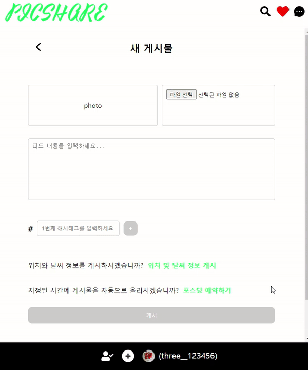 사용자가 피드 작성 시 현재 위치나 입력한 장소의 날씨 정보를 가져오고, 이를 바탕으로 해시태그를 추천하는 기능을 구현합니다. 이 글에서는 날씨 API를 사용하여 위치와 날씨 정보를 가져오고, 이를 활용해 피드에 정보를 입력하는 과정을 다룹니다.