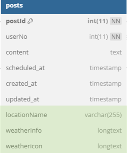 - weatherInfo : 날씨 정보 (JSON)