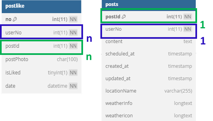 - userNo와 postId의 조합으로 중복을 방지하고, 특정 사용자가 특정 게시물을 좋아요 했는지 여부를 확인합니다.