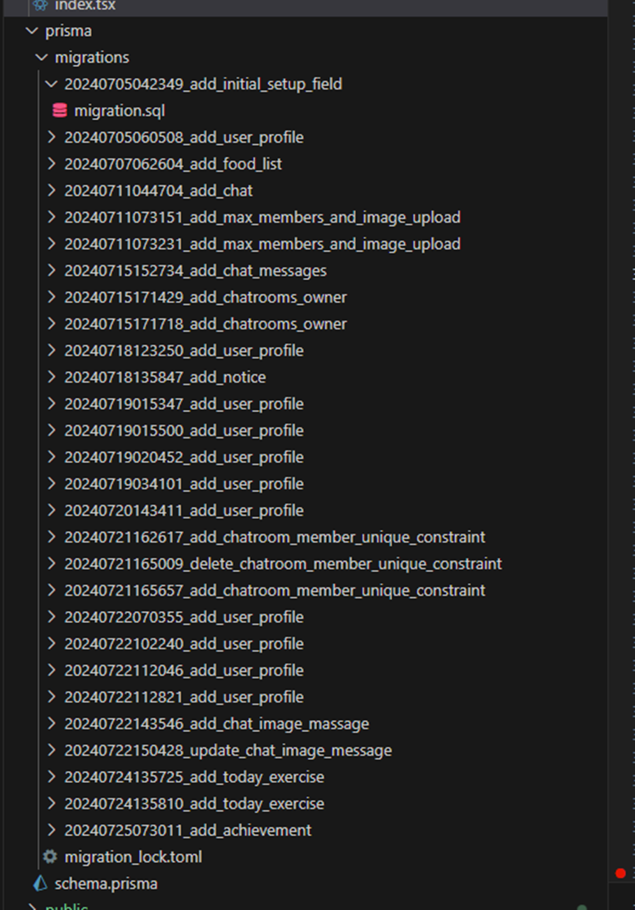 - prisma>schema.prisma : 데이터베이스 스키마를 정의하는 파일