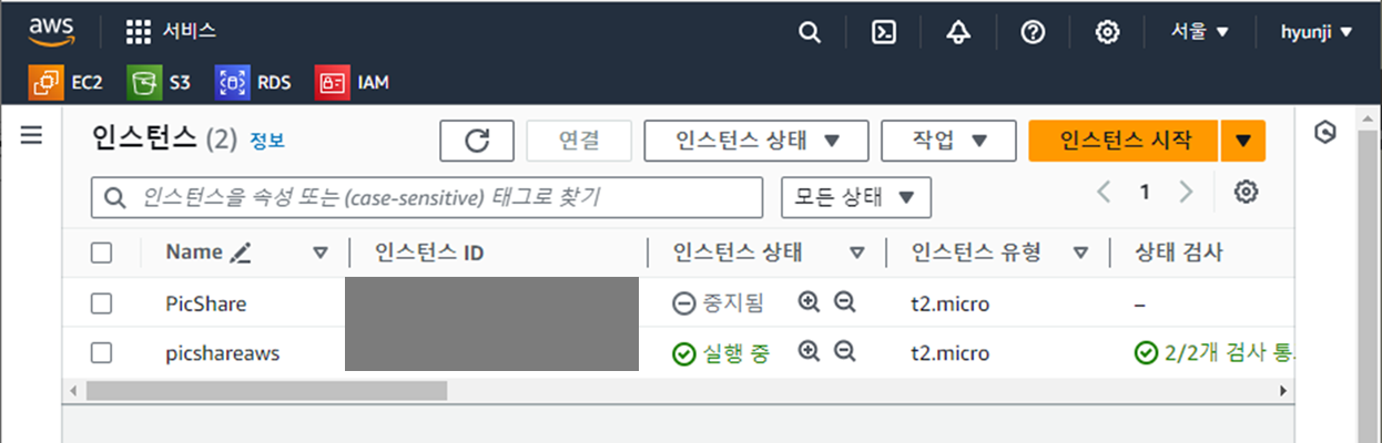 - 인스턴스를 사용하지 않을 경우 중지 후 종료해야 과금이 발생하지 않습니다.